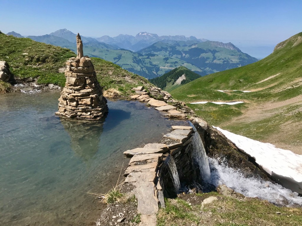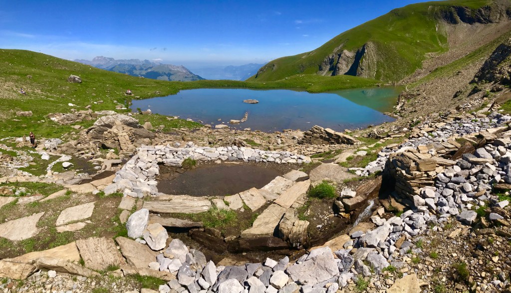 Une rando sur le parcours du tour des Dents-du-Midi au fond dont les cimes dominent majestueusement l’approche et finalement le lac de Soi au pied de ses dernières. En passant par les pâturages et les forêts, l’itinéraire traverse la géologie de la genèse de la terre, un parterre floral exceptionnel, la faune sauvage, les champignons ainsi que bon nombre de beauté d’un paysage très minéral en altitude. Au pied des 7 pics le lac de Soi émerge de nulle part dans une mystérieuse ambiance d’une présence anciennes des peuplades, mais il n’en est rien, de braves citoyens consacrent leur temps libre à façonner et entourer le site de sculptures architecturales inédites. Un lac et le reflet du ciel se confondent avec une limitation par l’horizon d’une prairie herbeuse parsemée de fleurs et de pierres sculptées par l’érosion.